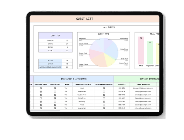 Simple, stress-free, and beginner-friendly Wedding Planning Spreadsheet.